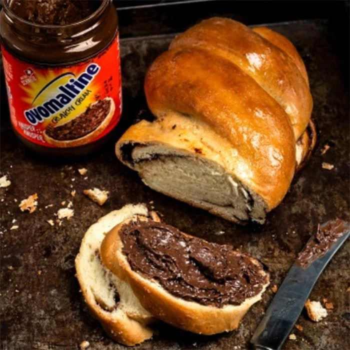 Zutaten: 33% malzhaltiges Getränkepulver* Ovomaltine [Gerstenmalzextrakt, kondensierte Magermilch, kondensiertes Milchserum, fettarmes Kakaopulver, Zucker, Fruktose, Mineralstoffe (Magnesiumcarbonat, Dicalciumphosphat), Rapsöl, Vitamine (A, E, C, Thiamin, Riboflavin, Niacin, B6, Folsäure, B12, Biotin, Pantothensäure), Speisesalz, Aroma Vanillin], Zucker, Rapsöl, Rapsöl ganz gehärtet, Haselnüsse, Emulgatoren (Sonnenblumenlecithin, Mono- und Diglyceride von Speisefettsäuren), Mineralstoff Dicalciumphosphat, fettarmes Kakaopulver, Antioxidationsmittel (Ascorbylpalmitat, Alpha-Tocopherol), Aroma Vanillin.
