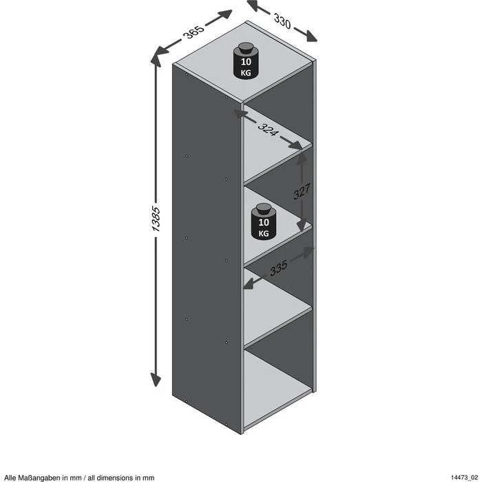 sonstiges: aus melaminharzbeschichteter Spanplatte in weiß, hochkant oder liegend aufstellbar