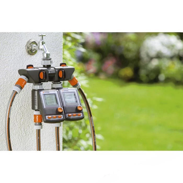 sonstiges: zum Betrieb von vier Bewässerungsgeräten, diese sind unabhängig voneinander stufenlos regulier- und absperrbar, es können z.B. zwei GARDENA Bewässerungscomputer oder Bewässerungsuhren und 2 Wasserschläuche angebracht werden