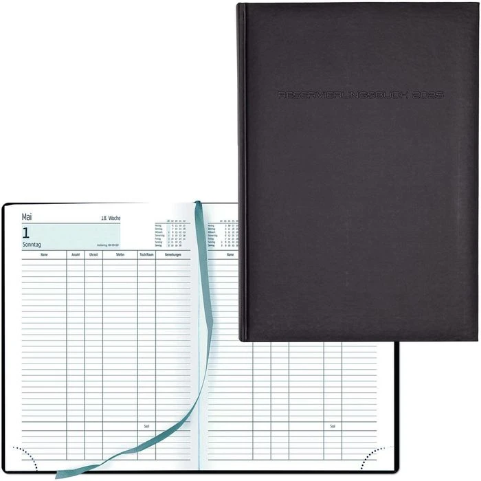 sonstiges:Wochenzählung, Lesezeichenband und Fadenheftung
