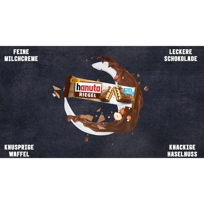 Zutaten: MILCHSCHOKOLADE 29,5% (Zucker, Kakaobutter, Kakaomasse, MAGERMILCHPULVER, BUTTERREINFETT, Emulgator Lecithine (SOJA), Vanillin), Palmöl, Zucker, HASELNÜSSE (12%), WEIZENMEHL (10%), MAGERMILCHPULVER (5,5%), VOLLMILCHPULVER (4,5%), SÜSSMOLKENPULVER, eiweißangereichertes MOLKENPULVER, fettarmer Kakao, Emulgator Lecithine (SOJA), WEIZENSTÄRKE, Salz, Backtriebmittel: Natriumhydrogencarbonat, Ammoniumcarbonat; Vanillin
