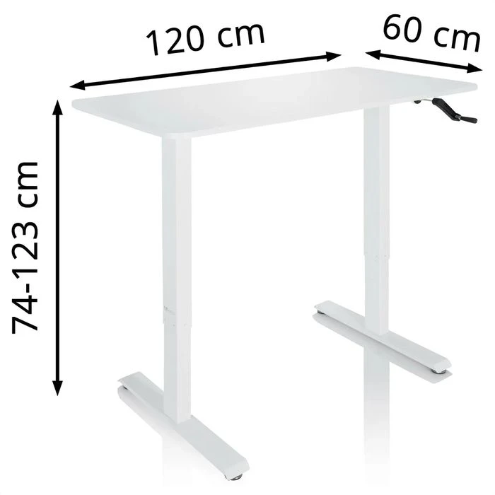 HJh-OFFICE Schreibtisch Stand CR, Weiß, Manuell Verstellbar Mit Kurbel 120 X 74-123 X 60cm