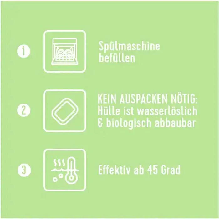 Eigenschaften: Bio, ohne Auspacken, ohne Plastik, ökologisch, wasserlösliche Folie
