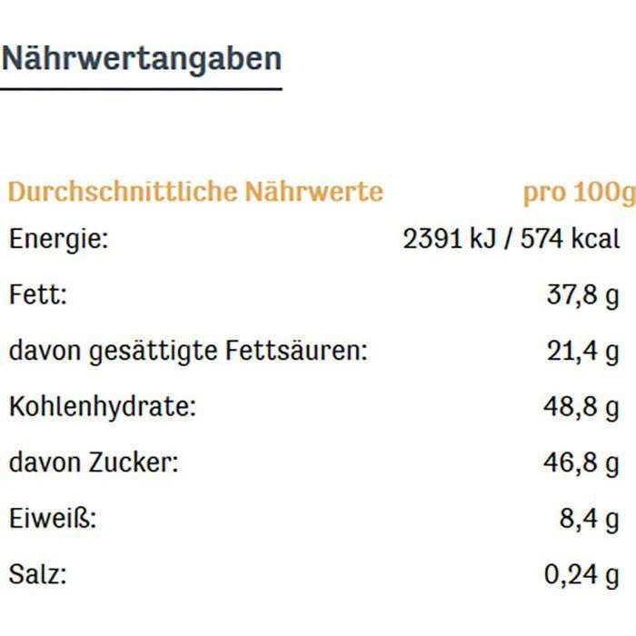 Alle Sorten können auch Anteile von HASELNUSS, MANDEL, ERDNUSS und anderen NÜSSEN enthalten.